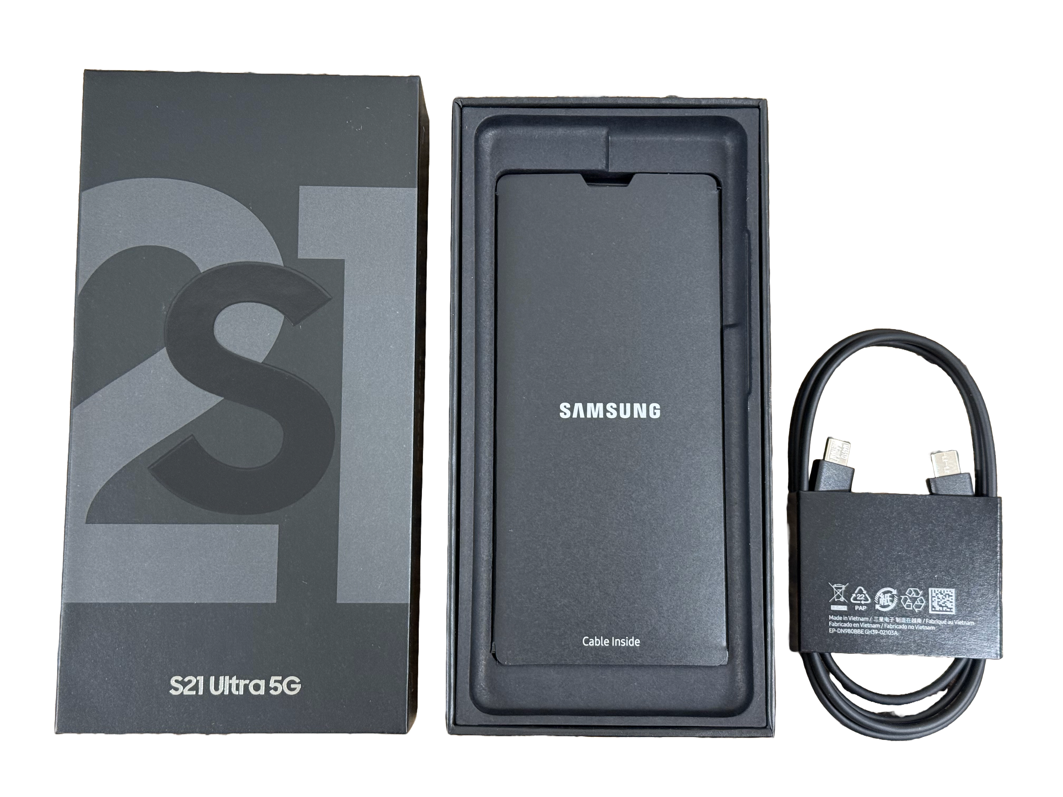 This is a new branded retail box for Samsung Galaxy S21 Ultra 5G in Black color.